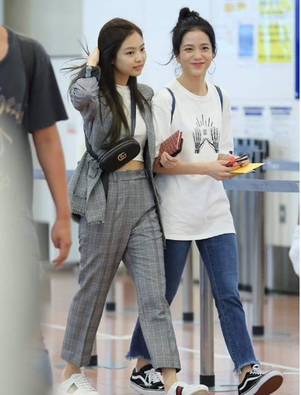 Jennie的私服品味跟防弹的V有点相似,两人偏好Gucci的衣服,一穿就是整套穿出来这样,所以粉丝都笑说这两人可以直接做代言人。