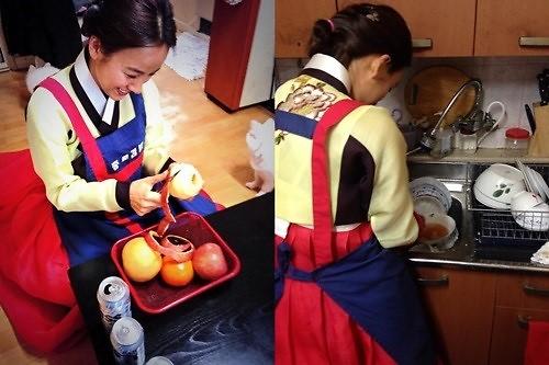 李孝利31日在推特上留言道,“正在Cosplay巧儿媳”、“我知道儿媳是什么样的”,并上传了两张照片。照片中她身穿韩服,戴着围裙,或洗碗或削水果,俨然一名孝顺儿媳。