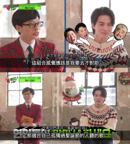 李栋旭说到自己连续5年都是和曹世镐、南昶熙一起过耶诞节,还会和梁世灿兄弟、柳炳宰一起吃饭,令刘在锡大呼感觉应该是我要去才对刘在锡请他给情侣们推荐适合圣诞节听的歌曲,单身人士李栋旭表示:这种事我都得关心吗? 最后换成适合独自过圣诞的人听的歌曲,李栋旭立即给出了答案:姜修智姐姐的《Winter Alone》。