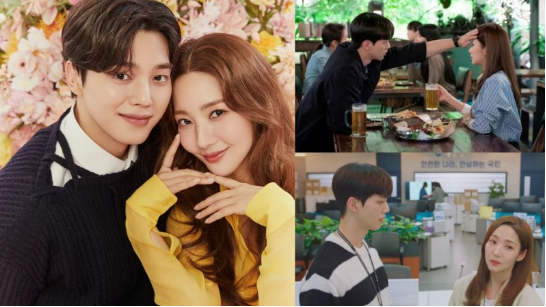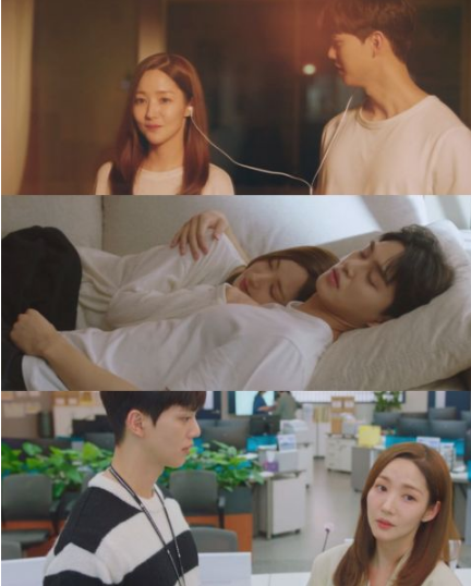 韩网讯/ 原来...在那天晚上,陈夏京(朴敏英 饰)接受了李时雨(宋江 饰)的告白,最终还转身回来给他热烈的 kiss!两人也约定好要谈绝对保密的办公室恋情,一旦被发现就立即分手。在工作上刁难李时雨只是对同事们使出障眼法,不过他们也偷偷牵手了。