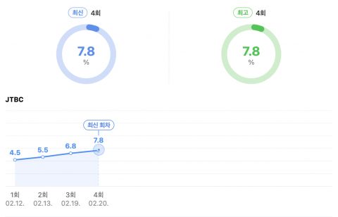 而《气象厅的人们》节奏快速,剧中虽然有不少关於气象的专有名词,但搭配著剧情就会觉得很有趣。目前播至第4集,首播收视是4.5%,第4集已经飙至7.8%,每集都在攀升中,更成为JTBC历代最高收视第9名。