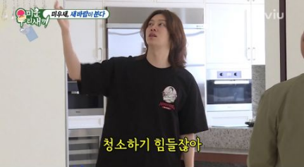 参观完金希澈的豪宅,李尚民也给出了自己的建议,称:如果要改装修的话,所有的都要改,不然不如不动。 金希澈调侃:打扫起来特别麻烦,不想要水晶灯。 李尚民反驳:水晶灯很贵,一定要留著,而且都是真水晶。 接著两人又仔细研究了厨房的墙,金希澈提到会敲掉厨房嵌入式的设计,不过紧接著又改了口风称:如果将来老婆不喜欢嵌入式的话,那个时候再敲掉也不迟,我肯定在这房子里结婚。