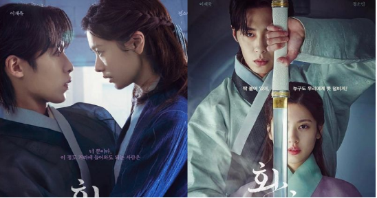 第一张海报聚焦在女主角庭沼珉的眼睛,她的脸颊似乎被李宰旭用手捧著,眼神有些迷蒙,眼睛瞳孔像蓝色钻石般的闪耀,海报上更写著从第一眼…就认出来了,是否说明两人是命中注定的前世姻缘?第二张双人版海报,更是李宰旭在后,神剑出鞘一半,遮住了两人各半边的眼睛,充满神秘感,而这张海报上则写著「紧紧贴合著,谁都无法莽撞冲向我们!」意味著两人合体展现无敌神力的感觉。