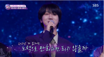 以五官判别以及各种提示渐渐缩小范围,多数都觉得钟真的哥哥很可能是 Super Junior圭贤,不过钟真说哥哥曾经戒酒七年,这让张度练等人马上察觉不对,因为圭贤可有绰号「曹酒鬼」啊!而李贤怡从头到尾秉持著差不多的意见,在钟真皱著眉唱歌后,更加确认他的哥哥是艺声。