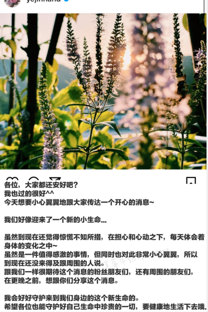 让粉丝们没想到的是,两人结婚的喜悦劲儿还没过去,又迎来了怀孕的好消息,这让两人的粉丝感觉无比激动。