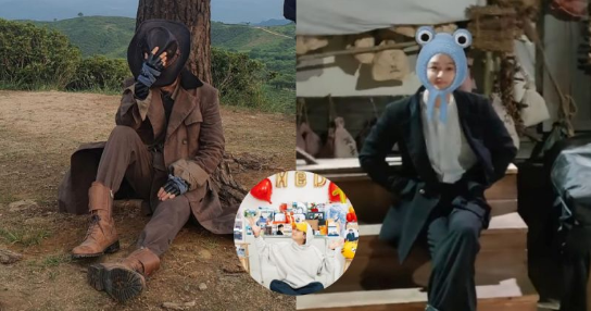 有趣的是,金泛似乎怎么样都不肯公开新发型!全身照的部分还不忘套个蛙头滤镜,显得更加可爱。