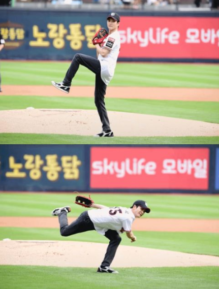 韩网讯/ 姜泰伍在最近热播的ENA电视剧《非常律师禹英祦》里饰演男主角李浚浩,昨日为KT巫师和韩华鹰的比赛担任开球嘉宾,一出场便收获现场观众的欢呼鼓掌声。