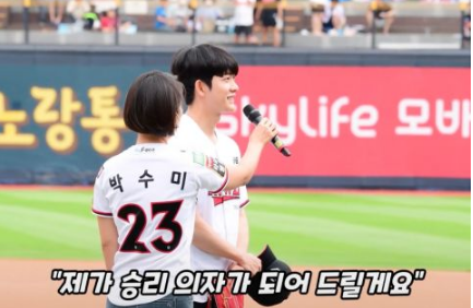 姜泰伍在剧中说要成为英祦专属的人形拥抱椅子,开球前也发表心动宣言:我会成为KT巫师的胜利之椅。
