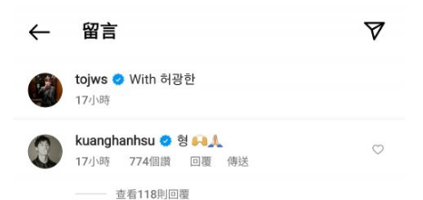 而昨(6)日晚间,许光汉突然出现在了郑雨盛的IG上!郑雨盛身为韩国忠武路男神,而许光汉为台剧男神,双男神的合影让彼此韩国与台湾的粉丝都相当激动。照片中两人笑著比Ya,郑雨盛文中简短写With许光汉,许光汉在下方留言喊哥。