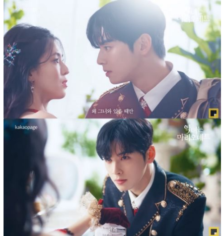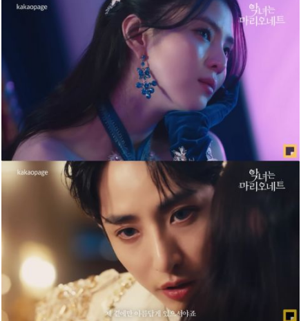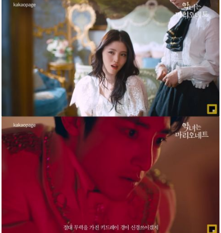 韩网讯/ 漫撕男女车银优、韩韶禧、李洙赫合体为 Kakao Page 《恶女是悬丝木偶》拍摄广告。