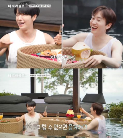 在户外泳池时,银赫还指著自己和东海对路人喊:这是不是太过分了?电视台太坏了对吧?但还是做做样子(?)和东海鸳鸯戏水。很可惜在按摩环节,赫海就没有真的一起泡玫瑰浴了。