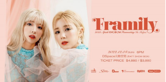 韩网讯/ 自2019年的见面会后,Apink的初珑、普美已经有3年没有见台湾的粉丝(Panda)了!她们真的很想念台湾粉丝,决定在12月4日来到台北的DSpace元动空间(原ATT SHOW BOX)举行“2022 Apink CHOBOM fanmeeting Framily”见面会。