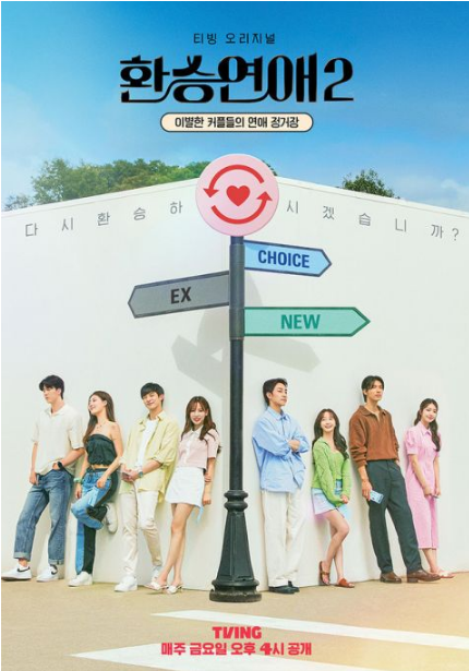 《换乘恋爱》是讲述因各种原因分手的情侣们聚在一起回顾过去的恋爱,面对新的缘分,寻找属於自己的爱情的恋爱真人秀。在2022年7月回归的《换乘恋爱2》是 TVING 历代原创内容累积付费加入入数第一位,在各种话题性排行榜上排名都是第一,展现火热的人气。特别是所有集数公开后,成海恩、郑贤奎、李娜妍、南熙斗、金泰亦、朴奈言等出演者的近况在网路上成爲话题,节目的余韵仍在继续。