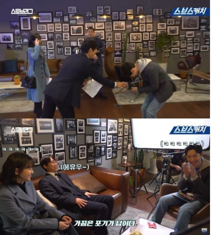 再往前回顾李帝勋客串《Stove League》的花絮,当时他可是又谦卑又害羞,恭敬的鞠躬、和南宫珉握了握手,在南宫珉NG说起玩笑话的时候拍手捧场(?)。现在两人熟悉程度完全不同,见面已能抱抱啦!