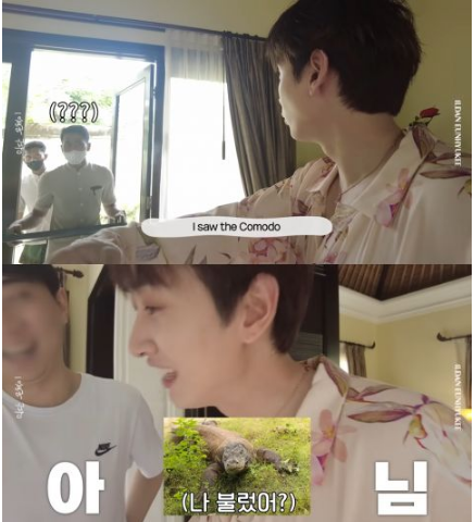 后来有饭店人员出现,银赫马上对他说:我看到科摩多龙了!不过饭店人员很淡定回应:科摩多龙?蜥蜴吗?是的,他们经常从后院出来。事后银赫看著网路上资料察觉根本不是科摩多龙,笑出来:不是科摩多龙,科摩多龙看起来更可怕。