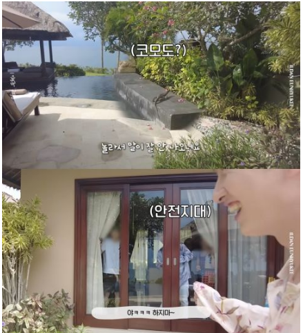 银赫YouTube频道几日前也公开了峇里岛之行Vlog,不仅有Room Tour(房间参观),还分享了自己夜泳、吃宵夜的场面。有趣的是,赫海和工作人员曾在房间里一同撞见科摩多龙在池边现身,银赫为了拍得更清楚走出房间,结果东海不晓得是太害怕还是太调皮,干脆把门关起来,严守自己的安全不管银赫死。
