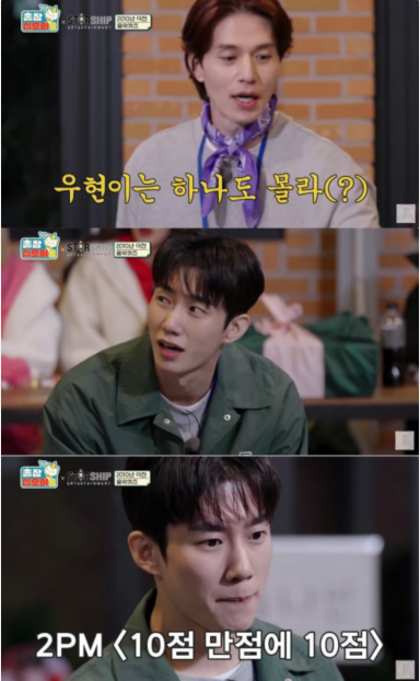 这时,李栋旭在一旁Diss:在我看来宇贤一题都不知道!孙宇贤也说:现在好像知道了!结果...下一题音乐放没多久,孙宇贤马上大喊,还正确答出是2PM〈十分满分的十分〉,此外还翻了跟斗大秀舞技,这让全部的人都超惊讶:哇~舞怎么跳的怎么好。