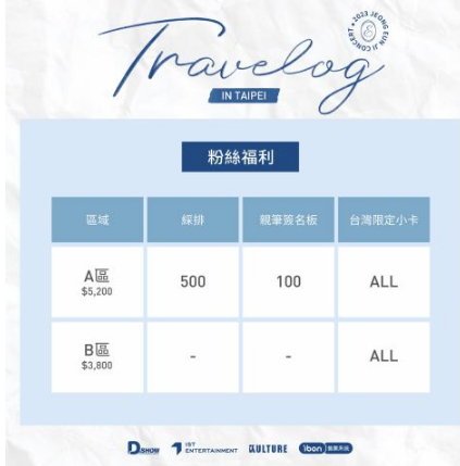 粉丝福利:彩排 / 亲笔签名板 / 台湾限定小卡
