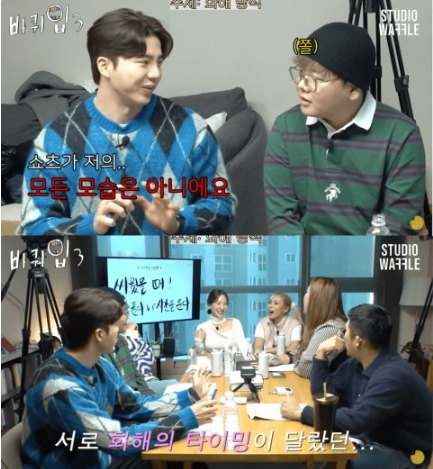他们还以吵架和好的方式爲主题进行讨论,曹世镐、PUNGJA、熙斗表示最好马上和好。相反,Gabee、李龙真、KWAKTUBE、娜妍则选需要时间。KWAKTUBE 还问熙斗:(吵架时)不是会生气,更生气的类型吗?熙斗也解释:短影片不是我的全部样子,当时在娜妍身上堆积很多东西。娜妍也说现在自己倾向快点和好,当时是因为和好的时间不同,所以出演当时经常吵架。