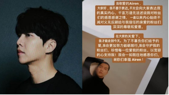 尊敬、亲爱的Airen,因为我是不善於表达的人,所以没能即时向大家传达真心。我想对无时无刻都对我抱持著信任的粉丝们表达深深的敬意和爱意,有大家的爱,我才能走到今天。为了不辜负你们的爱,我会更加努力,现在由我来守护粉丝们。请大家以宽容之心看待,一直很感谢你们。变得幸福吧Airen!