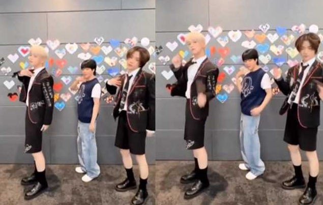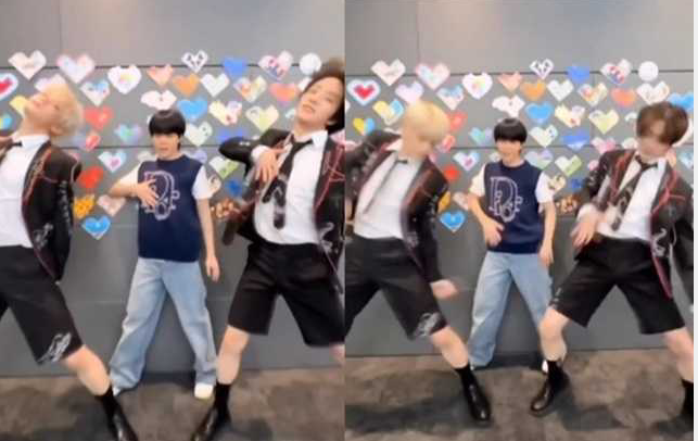Jimin在社群网站分享一段小短片,画面可以看到他站在中间,两侧分别是TXT的Soobin和Beomgyu,三人一起开心热舞,整齐划一,仿佛像同一个团体,只不过,站在中间的他,个子显得有些娇小,让粉丝忍不住狂讨论。