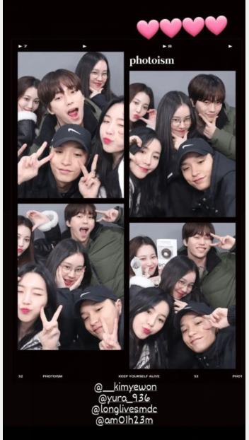 Simon D、金睿园、Yura 还和贤奎、海恩一起拍了贴,大家互相交换位置,摆出不同的姿势和表情。
