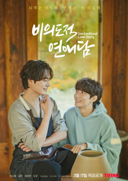 《非意图的恋爱谈》去年6月宣布主演,年底就开始进行宣传,陆续释出了多张令人心动的海报吊人胃口(←你不能没看过><),但都没有公开播出的平台,近期才确定落脚韩国大型串流平台(OTT)TVING,是TVING继去年的《致我的星星2》之后再播出BL剧。