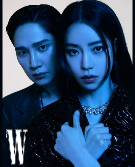 林智妍和朴成勋的双人合影,两人面无表情地看向镜头,在灰蓝色灯光地照射下彷佛是一对阴森情侣,让人看得不寒而栗。 他们的单人海报都穿上了蓝绿色系的衣服,展现了另类的CP LOOK。