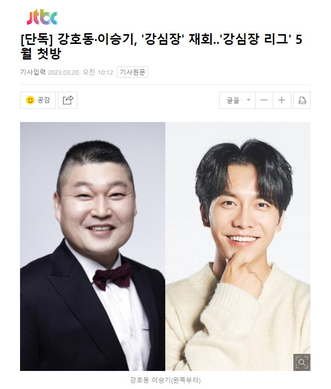 20日,韩媒报道某电视台相关人士表示:“SBS将制作新版本的《强心脏》,首任MC姜虎东和李昇基将通过《强心脏联盟》再会。”这个消息也让网友们感到十分惊喜。