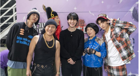 左至右分别为:朱宇宰、曹世镐、洪真庆、BTS Jimin、金淑、2PM张佑荣