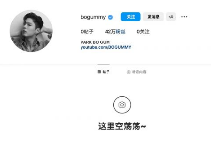 今年1月朴宝剑签约新东家THE BLACK LABEL,2月有粉丝发现IG上出现一个新的非公开账号bogummy,虽然没有头像也没有关注,但却有象徵官方认证的蓝勾勾,推测就是他本人!