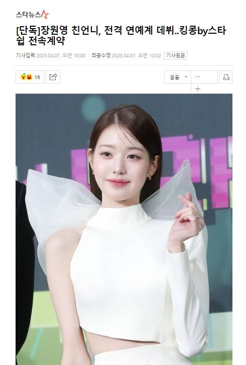 7日,Kingkong by Starship的相关人士对iMBC演艺公司表示:"与张元英的姐姐张多雅(音)签订了专属合约。"目前,张多雅确定会在娱乐圈发展,但是最终是演员还是歌手并未确定。
