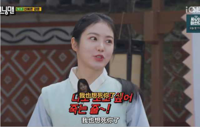 接下来辛睿恩不顾经纪公司下的禁舞令,现场展示了《Hype Boy》、《OMG》、《Fighting》,超舞痴的舞技笑倒全场。让节目组忍不住表示用表情决胜负、眼睛清澈的狂人。