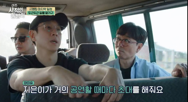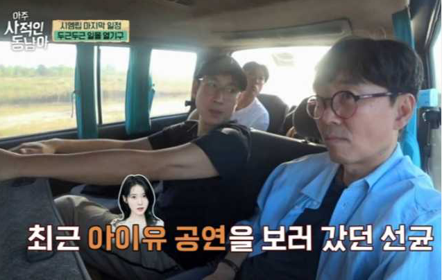 节目中成员们在离开柬埔寨之前,要体验乘坐热气球,而在前往的路途中,因为热气球而开启话题的李善均说:最近去看了IU的演出,在蚕室奥林匹克主竞技场内,居然出动了热气球。。当张恒准好奇演唱会规模时,李善均表示运动场全被填满了,更透露「知恩(IU本名)几乎每次演出都会邀请我,《我的大叔》剧组也一起去观看了。