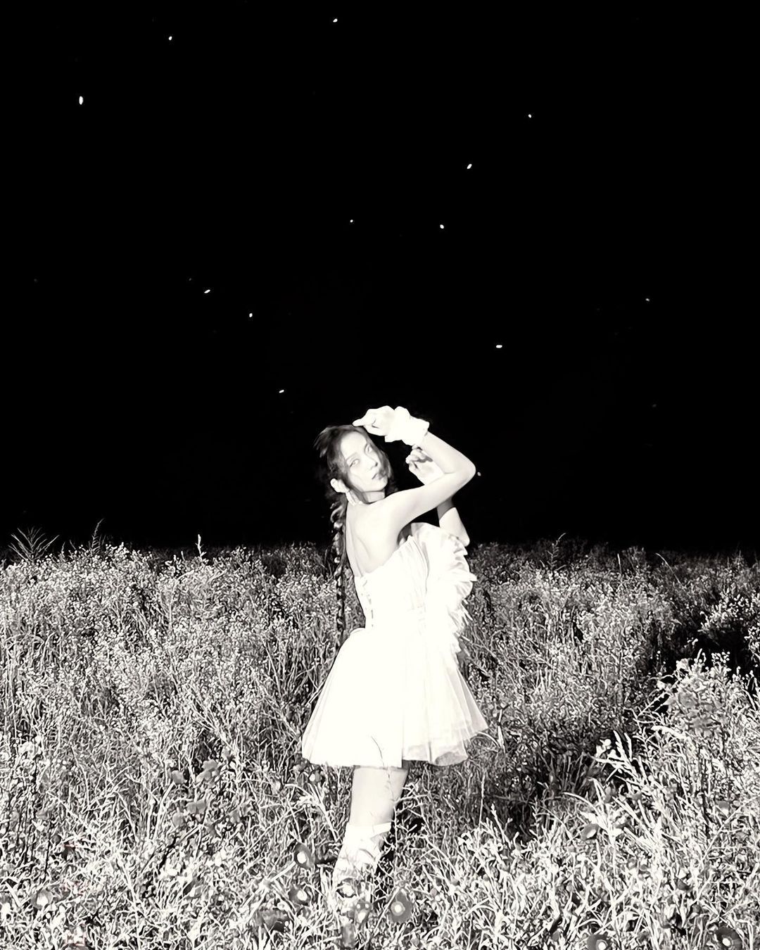 刚刚发布SOLO的智秀在ins上发文“和夜空星星的一起去看今天的智秀吧”