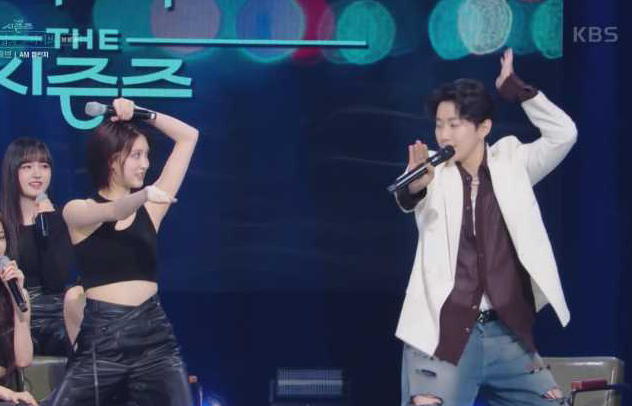 朴载范说到这次的主打歌《I AM》表示当然要来学一下,由对内大姊秋天带领学一段副歌的主要动作,朴载范刚看一小段则透露编舞动作非常的女性化。