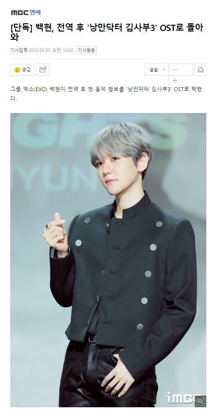 EXO边伯贤将演唱《浪漫医生金师傅3》OST 退伍之后的首个作品