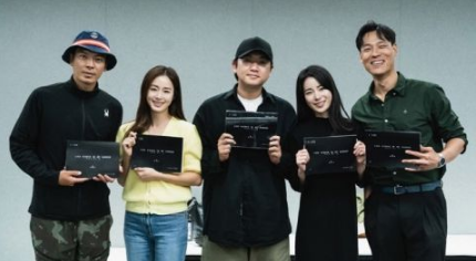 ▼台词排练(读本)现场五人合照左至右:金盛吴、金泰希、郑志贤导演、林智妍、崔载林