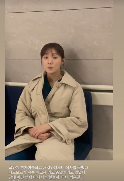 此外,李圣经等待拍摄时的身影也被捕捉到,她穿著一件保暖大衣,里面是深蓝色的手术衣,坐在椅子上咬著嘴唇发呆。 李圣经解释:紧急转移了患者连饭都没来得及吃,我不自觉地在嘟囔著好饿啊,但是!我又被拍到了,还是说有人在拍我?? 到底是谁??不停在寻找偷拍人,看得出《浪漫医生金师傅3》的拍摄片场氛围很和谐,不然也不会有人拍下这些场景,还被李圣经转发到自己的IG帐号里。