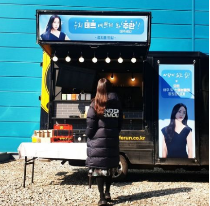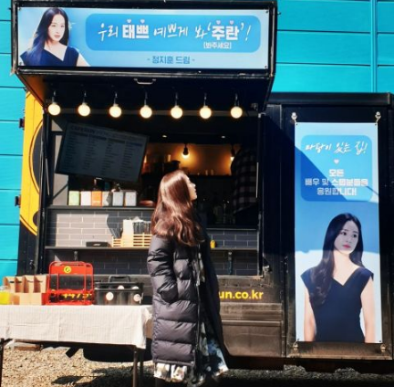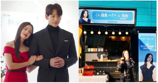 新作品开播在即,金泰熙也通过个人Instagram上传应援认证照,里面还有来自老公Rain(郑智薰)的咖啡车。横幅上写著:请好好关照我们泰漂亮! -郑智薰 敬上,挂轴则有为《有院子的家》所有演员和工作人员们应援!的文字。尽管金泰希用左手遮住自己的笑容,但还是可以感受到她散发出的幸福氛围。