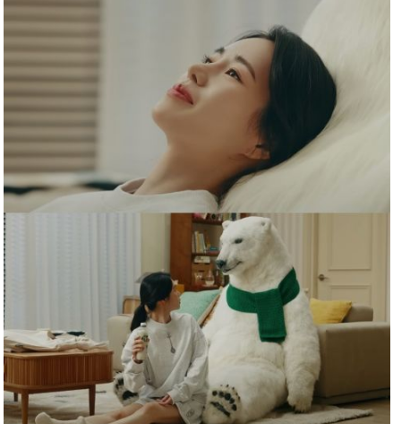韩国某茶饮品牌近日公开系列广告影片,林智妍饰演的上班族工作一天回到家后拿出茶饮,大口喝下后放松地躺在白色毛绒抱枕上,不料抱枕突然变成白熊,还开口说话:怎么样? 好喝吗? 吓得林智妍啊啊啊~~尖叫出颤音。