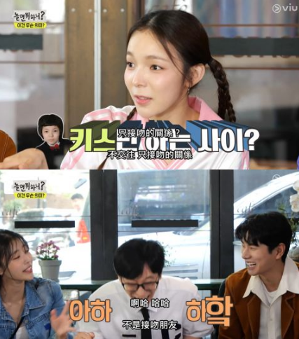《玩什么好呢?》固定班底群聚在一起东南西北聊,美珠一咳嗽,Haha就逮到机会说李伊庚也感冒了,朴真珠雷达(?)马上启动问:两人接吻了吗?引起全场激动。当美珠撇清我们不交往,朴真珠又造谣:不交往,只接吻的关系?大家吵成一团,美珠回应:绝对不是接吻朋友。自我发明了接吻朋新造词。