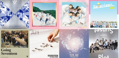 男团SEVENTEEN26日发行的八张再版专辑均登上音源排行榜前列
