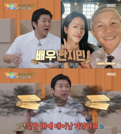 我和演员韩志旼是同龄朋友。曹世镐一讲出来就被李龙真、柳炳宰吐槽只是在炫耀人脉、又说谎了,但他解释同岁才变成朋友之外,实际上也是会打电话问对方要不要一起吃饭的程度。