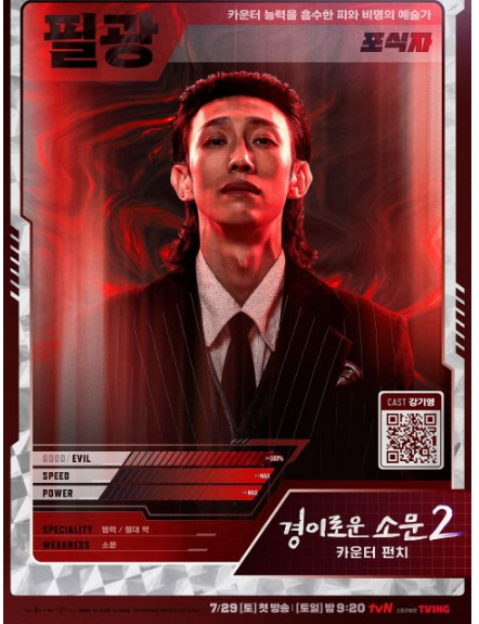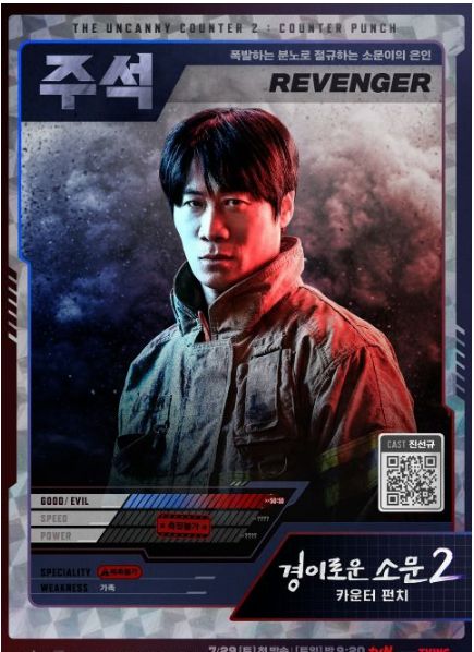 tvN 人气漫改剧《驱魔面馆2》公开了三大新角色的海报,装饰成战斗卡牌般显示每一个新人物的特性,风格强烈令人留下深刻印象。本剧讲述伪装成面店的恶鬼猎人组织「Counter」携手打击从死后世界来到人间、追寻永生恶鬼们的奇幻动作剧。