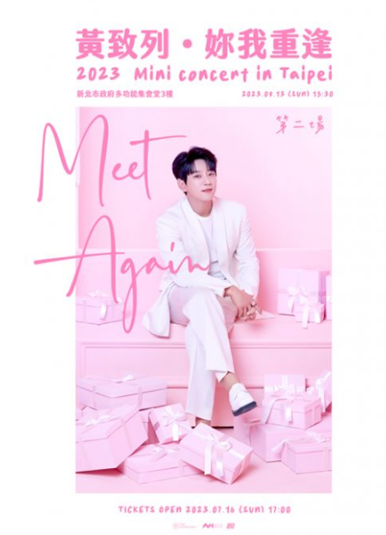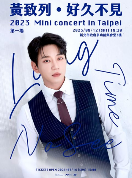 黄致列本次来台开唱与以往不同,带来了五人乐团LIVE演奏与他的歌声搭配,想给大家更不一样的感受。为了一连开唱两天给粉丝们新鲜感,两日的主题分别是首日的《好久不见》以及第二天《你我重逢》,黄致列甚至连节目内容与曲目都做了不同的规划,只为使出浑身解数满足所有粉丝们的心。正式售票日期为7月14日,DAY 1首场,售票时间为13:00 / DAY 2第二场,售票时间为15:00宠粉级惊喜的另一项礼物,将提前於8月11日举办一场线下面对面的签名会!签名会活动与各项粉丝福利与事宜,近期将会於粉丝团公告,敬请密切期待!