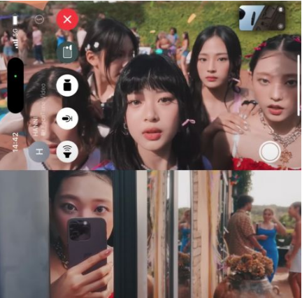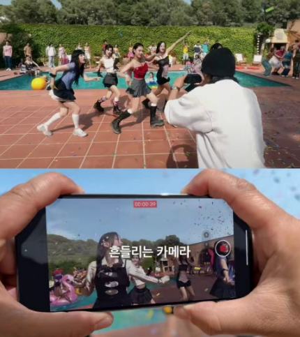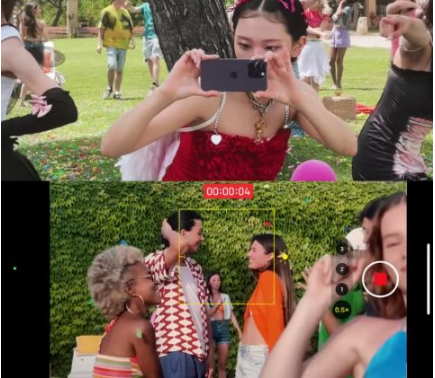 Apple韩国YouTube频道公开了MV拍摄花絮,可以看到拍摄时摄影师不断移动、手机晃动幅度很大,但画面依然十分稳定。 此外还运用电影效果模式(cinematic mode)呈现富有纵深感的画面,在光线不足的场景中也获得稳定清晰的表现。