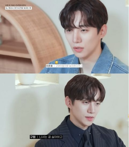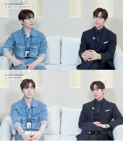 而被问到两人若交换身分的话如何呢?李俊昊说自己若成了财阀三世,应该会想要尽情玩乐吧!具元则说难以想像自己成为艺人,我不喜欢抛头露面,不喜欢受到大家关注之后又说因为具元什么都会,做什么都完美,所以也很难不受关注。最后这段访谈,就以李俊昊与具元互赞对方很帅作为结尾。
