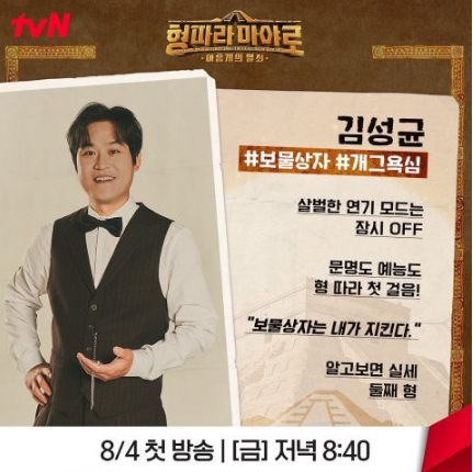 不仅如此金成均也跨足综艺,8月4日即将公开的综艺节目《跟著哥哥去玛雅:九把钥匙》中将与车胜元以及The BOYZ柱延合作,展现金成均独特的综艺感,在每周五晚间为观众们带来趣味。而在8月30日即将上映的新电影《Target目标》中,金成均将与申惠善、姜泰伍合作,变身为刑警来调查申惠善所卷入的事件。稍早Netflix更透过SNS公开了金成均将与金宇彬合作新电影《武道室武官》,可说是忙碌不已。