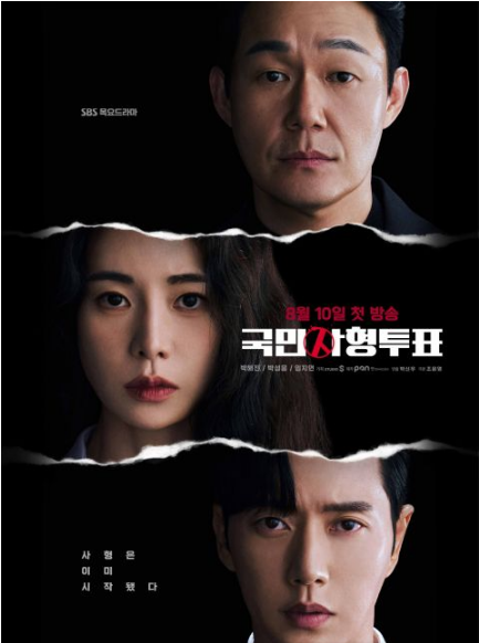 《国民死刑投票》制作方也公开了最新的海报,以黑色为背景衬托出朴海镇、林智妍、朴诚雄三人的坚定眼神,加上了简短的一句话死刑已经开始了预告了本剧走向。制作组更表示三位演员压倒性的演技实力,绝对是大家相信而看的理由,也为这部作品增添了更多看点,更大赞有了这三位演员的加持就如同获得千军万马,对这部作品相当有信心。《国民死刑投票》将於8月10日率先首播两集,之后每周四公开一集。